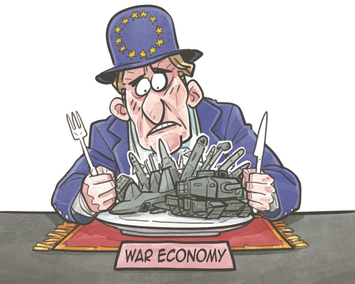 歐洲正陷入“戰(zhàn)爭經(jīng)濟困境”風險。(來源:中國日報 蔡艨 英文《中國日報》2024年3月28日8版)