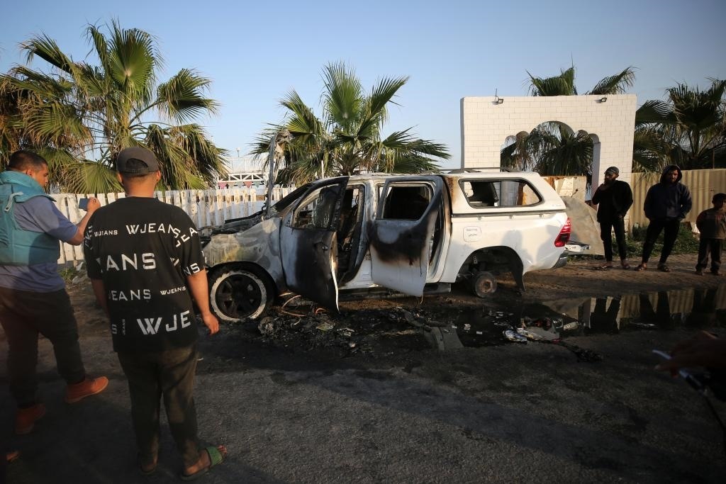 ?4月2日,在加沙地帶中部代爾拜拉赫,巴勒斯坦人在空襲過后查看被毀的汽車。巴勒斯坦紅新月會2日發(fā)表聲明說,以色列軍隊(duì)1日晚空襲加沙地帶中部城市代爾拜拉赫,造成慈善組織“世界中央廚房”7名工作人員死亡。新華社發(fā)(亞西爾·庫迪攝)