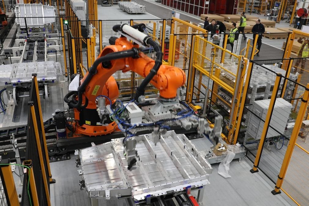 2月23日,在法國呂茨,搬運機器人在中國敏實集團與法國雷諾集團成立的合資公司的電池盒產(chǎn)線上工作。新華社記者張百慧攝
