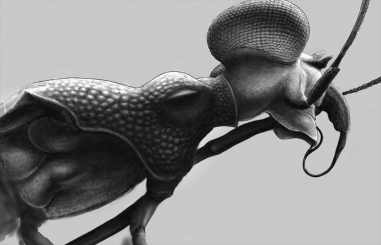 聲明說,研究人員在研究采自緬甸北部山谷一個琥珀礦的白堊紀中期化石標本時發(fā)現(xiàn)了一種昆蟲,其眼睛尺寸異常大,體色圖案復雜,且有明顯擴展的盾片。此外,它的翅膀上有獨立的前緣脈和亞前緣脈。研究人員認為,這種昆蟲的顏色和獨特形狀也許可以威懾捕食者。