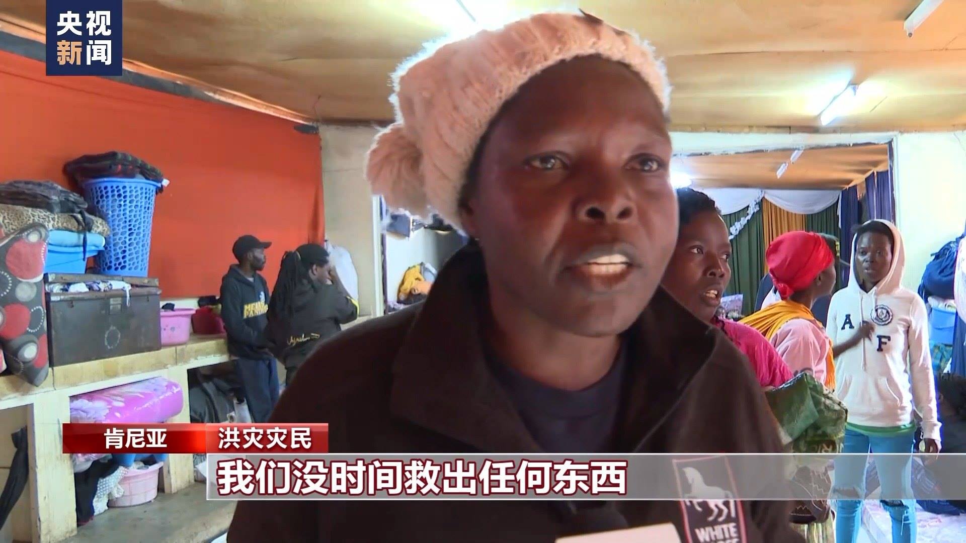 總臺記者 劉晨:這里是位于肯尼亞首都內(nèi)羅畢市中心馬薩雷貧民窟里的一所小學,因為洪災(zāi)失去住所的居民們被臨時安置在這里。由于暴雨影響,肯尼亞當?shù)貙W校的開學時間從本周又向后推遲了一周?,F(xiàn)在我身后這樣的教室已經(jīng)被改造成了臨時寢室,供災(zāi)民休息。政府送來了棉被和枕頭,每天也會定時為這里的難民提供食物。