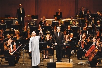 2005年,果敢在巴黎議會宮同巴黎歌劇院交響樂隊合作演出。頭頂是聚光燈,身后是150人組成的交響樂隊,二胡的兩根弦拉響,身穿白色長袍、剃著光頭的他一下被人們記住。