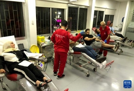 9月17日,在黎巴嫩貝魯特,人們登記為傳呼設備爆炸事件傷者獻血。新華社發(fā)(比拉爾·賈維希攝)
