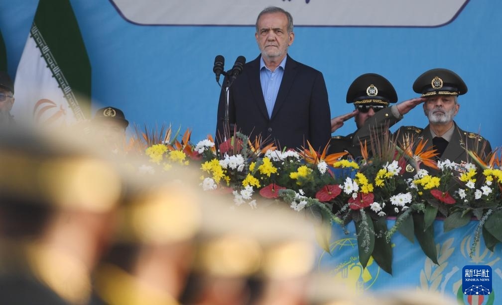 9月21日,在伊朗首都德黑蘭,伊朗總統(tǒng)佩澤希齊揚(yáng)出席閱兵式。