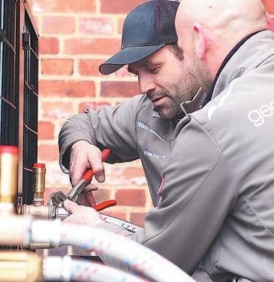 德國(guó)環(huán)保設(shè)計(jì)企業(yè)地之氣公司與中國(guó)同方股份有限公司合作,為德國(guó)公共部門、大型企業(yè)和私人家庭提供熱泵供暖整體解決方案,這是中德在新能源領(lǐng)域深化合作的代表項(xiàng)目之一。圖為德國(guó)工人在安裝調(diào)試中國(guó)熱泵產(chǎn)品。本報(bào)歐洲中心分社 肖 晶攝