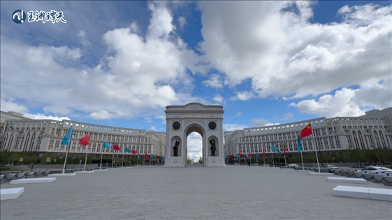 ||譚主抵達(dá)阿斯塔納,象征著哈薩克斯坦歷史的“凱旋門(mén)”周?chē)h揚(yáng)著歡迎旗幟