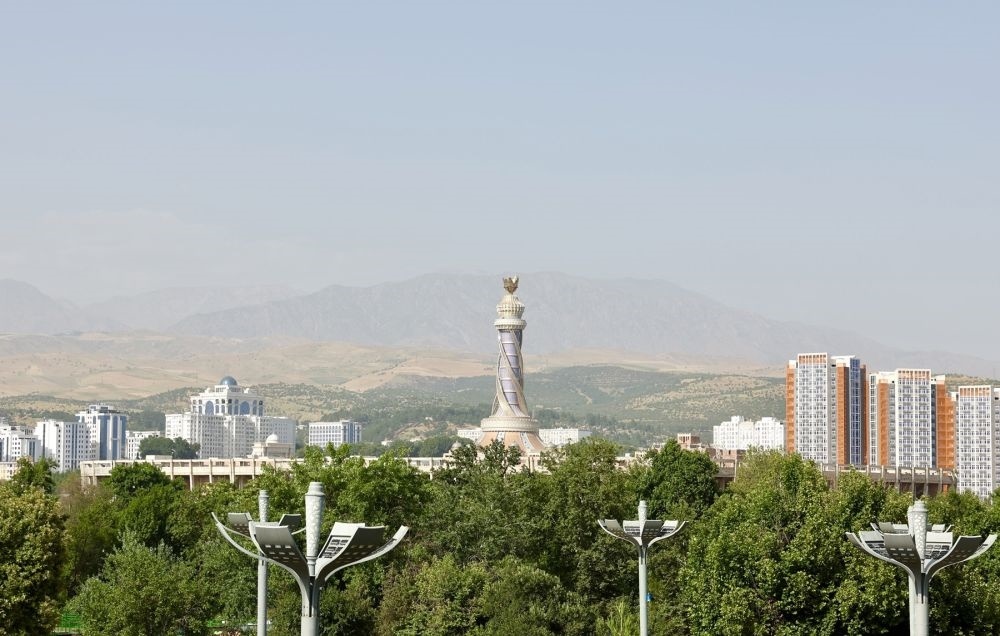 ↑位于杜尚別的獨立與自由塔。 新華社記者 申宏 攝
