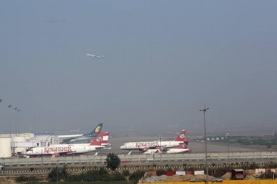 2013年2月1日,在印度首都新德里,飛機(jī)??吭谟⒌侠じ实貒?guó)際機(jī)場(chǎng)。新華社記者李毅剛攝