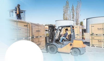 在中建材南非海外倉(cāng),當(dāng)?shù)貑T工正在裝卸貨物。本報(bào)非洲中心分社 希拉茲·莫林?jǐn)z
