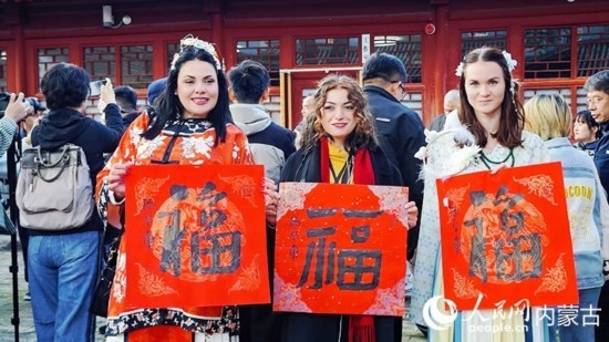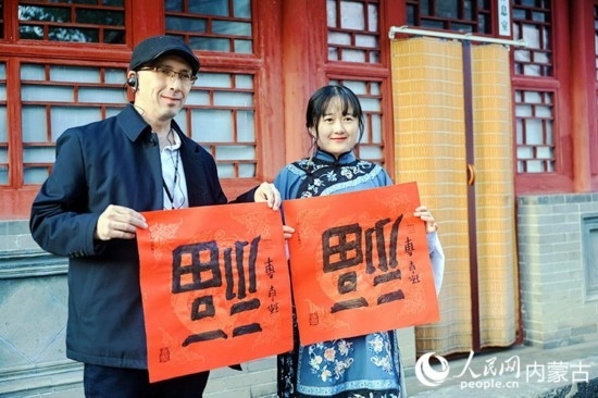 人民網(wǎng)呼和浩特10月23日電 (張聿修、孟佳澍、張雪冬、實習(xí)生朱昱晗)?!暗埂绷???!暗健绷?!擺弄著手中的福字,了解到關(guān)于福字的寓意,塔吉克斯坦記者烏斯蒙·阿卜杜恰洪洛夫露出驚訝的表情,感嘆中國語言蘊含的智慧。