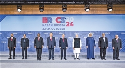 當(dāng)?shù)貢r間10月23日上午,金磚國家領(lǐng)導(dǎo)人第十六次會晤在喀山會展中心舉行。俄羅斯總統(tǒng)普京主持會晤。中國國家主席習(xí)近平、巴西總統(tǒng)盧拉(線上)、埃及總統(tǒng)塞西、埃塞俄比亞總理阿比、印度總理莫迪、伊朗總統(tǒng)佩澤希齊揚(yáng)、南非總統(tǒng)拉馬福薩、阿聯(lián)酋總統(tǒng)穆罕默德等出席。這是會晤期間,金磚國家領(lǐng)導(dǎo)人集體合影。新華社記者 李學(xué)仁攝