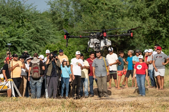 2024年2月2日,在巴西阿波迪,人們觀看一款中國生產(chǎn)的農(nóng)用無人機。當(dāng)日,中巴農(nóng)業(yè)機械化合作示范項目啟動儀式在巴西阿波迪舉行,第一批來自中國7家農(nóng)機企業(yè)共31臺(件)設(shè)備正式交付給巴西農(nóng)村勞動者組織。新華社記者 王天聰 攝