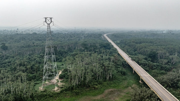 這張2024年9月13日拍攝的照片顯示,在巴西朗多尼亞州,EDP輸變電項目線路穿越熱帶雨林(無人機照片)。巴西EDP輸變電項目是位于巴西北部的阿克里州和朗多尼亞州的綠地輸變電工程,山東電建一公司承擔(dān)了該項目的EPC總承包任務(wù)。項目全面完成后,將極大提升當(dāng)?shù)仉娋W(wǎng)的輸電能力,增強電力供應(yīng)的可靠性和穩(wěn)定性,對巴西北部地區(qū)的可持續(xù)發(fā)展和經(jīng)濟(jì)增長具有重要意義。新華社記者 王天聰 攝