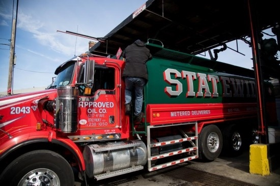 2022年3月8日,一輛運油車駛過美國紐約街頭。新華社發(fā)(邁克爾·內(nèi)格爾攝)