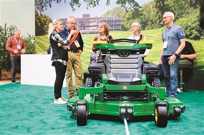 圖為在美國(guó)拉斯維加斯消費(fèi)電子展上,人們觀(guān)看一款農(nóng)用車(chē)輛。
