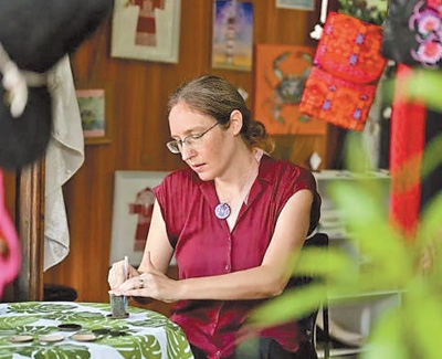 “這種美麗的藝術(shù)讓我沉醉。”小店里,謝敏拿起一小塊椰殼,蘸取顏料,在椰殼上細細勾勒。
