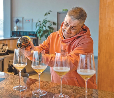 “除了葡萄酒外,我們還不斷拓展釀酒種類。這兩款酒是由我們員工自家種植的大米和蘋果釀制的?!奔贸鰞善烤谱院赖亟榻B道,“它們在市場上很受歡迎,農(nóng)產(chǎn)品附加值提高了,員工們的收入更多了,真正實現(xiàn)了產(chǎn)業(yè)與生活的緊密結(jié)合?!?/p>