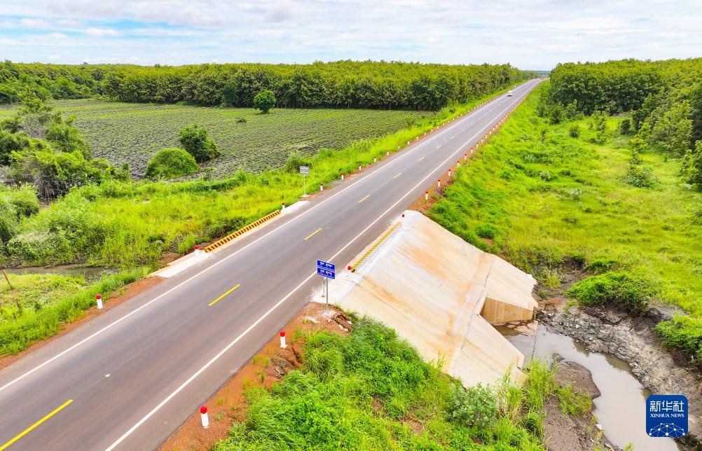 這是2024年7月14日在柬埔寨特本克蒙省拍攝的71C號(hào)國(guó)家公路(無人機(jī)照片)。新華社發(fā)(尼多拉攝)
