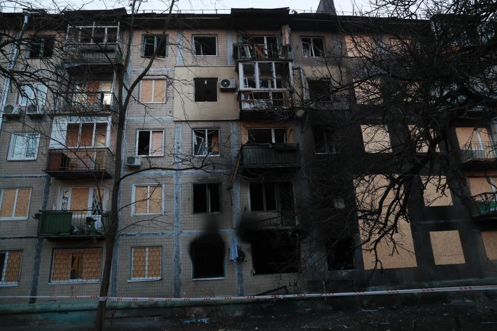 這是11月14日在烏克蘭首都基輔市第聶伯區(qū)拍攝的遭受空襲損毀的房屋。新華社記者李東旭攝