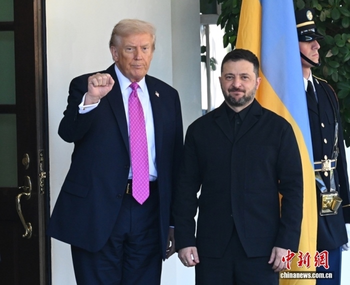 當(dāng)?shù)貢r間10月17日,華盛頓,美國總統(tǒng)特朗普在白宮會晤烏克蘭總統(tǒng)澤連斯基。中新社記者 陳孟統(tǒng) 攝