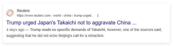 不過,盡管日本政府否認,包括路透社在內(nèi)的更多西方媒體,卻陸續(xù)通過其他信源印證了特朗普讓高市早苗不要刺激中國的情況。就連日本共同社也在報道中提及此事——當然,共同社同樣遭到了日本右翼分子的圍攻。