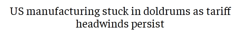 文章還表示,關(guān)稅帶來的不確定性“陰云”不太可能很快消散。美國最高法院大法官上個(gè)月對政府關(guān)稅的合法性提出質(zhì)疑,引發(fā)了人們對這些關(guān)稅將被推翻并造成更大混亂的猜測。文章援引桑坦德資本美國資本市場首席經(jīng)濟(jì)學(xué)家斯蒂芬·斯坦利(Stephen Stanley)的觀點(diǎn)表示:“(美國)制造業(yè)將繼續(xù)受到難以預(yù)測的關(guān)稅政策的拖累。”