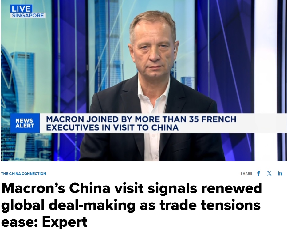 席睿德舉例說,法國方面此次隨行的龐大 CEO 代表團(tuán),彰顯了法國企業(yè)對中國市場的高度重視。代表團(tuán)成員覆蓋航空航天、能源、食品等多個關(guān)鍵領(lǐng)域,其核心目標(biāo)便是尋求新的商業(yè)合作與交易機(jī)會。他認(rèn)為馬克龍訪華將取得實(shí)質(zhì)性成果。