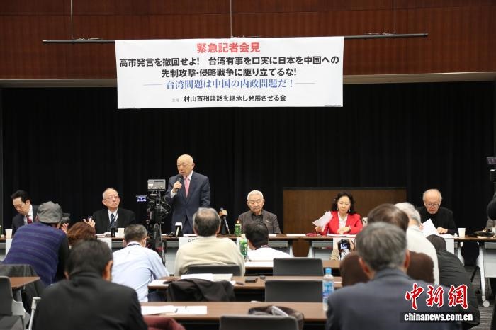 12月8日,日本多名學(xué)者及市民團(tuán)體代表在位于東京的日本參議院議員會(huì)館舉行記者會(huì),要求日本首相高市早苗撤回涉臺(tái)錯(cuò)誤言論。圖為“繼承和發(fā)展村山談話會(huì)”理事長藤田高景發(fā)言。中新社記者 朱晨曦 攝