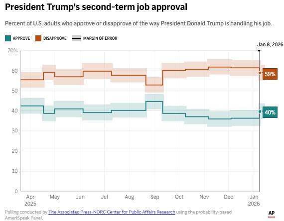 特朗普第二任期執(zhí)政滿(mǎn)意度圖表。圖片來(lái)源:美聯(lián)社