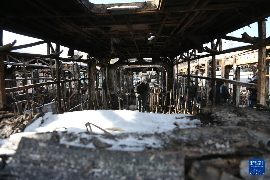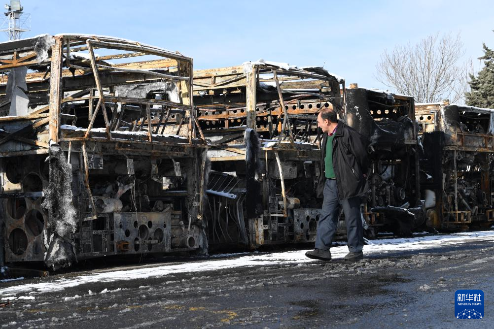 1月21日,在伊朗首都德黑蘭,一名男子走過(guò)在近期騷亂中被燒毀的公交車(chē)。新華社記者 沙達(dá)提 攝