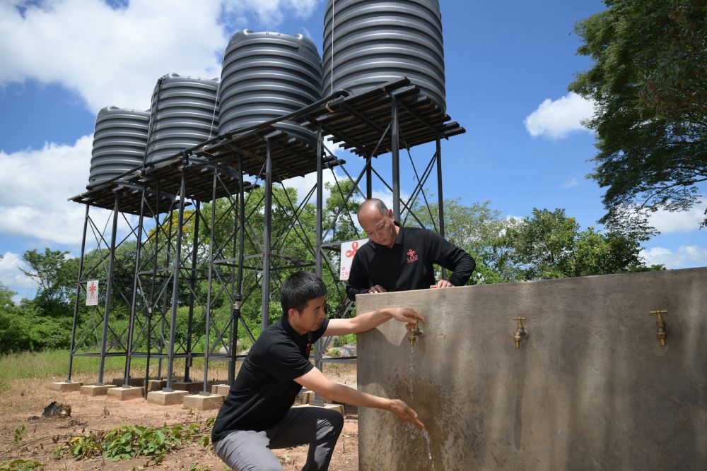 1月26日,在津巴布韋中馬紹納蘭省沙姆瓦地區(qū)津迪村,中國援津第四期高級農業(yè)專家組專家在一處儲水點檢查水龍頭。新華社記者 楊光 攝