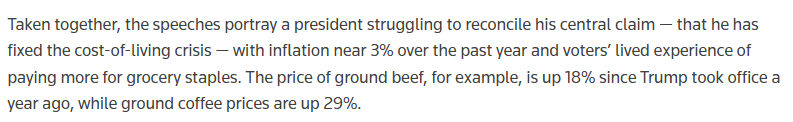 報道認(rèn)為,這些數(shù)據(jù)與美方“已解決生活成本危機”的表述形成反差。而相關(guān)言論將通脹問題描述為“已經(jīng)解決”,這一說法難以與民眾在超市等日常消費場景中的體驗相吻合。