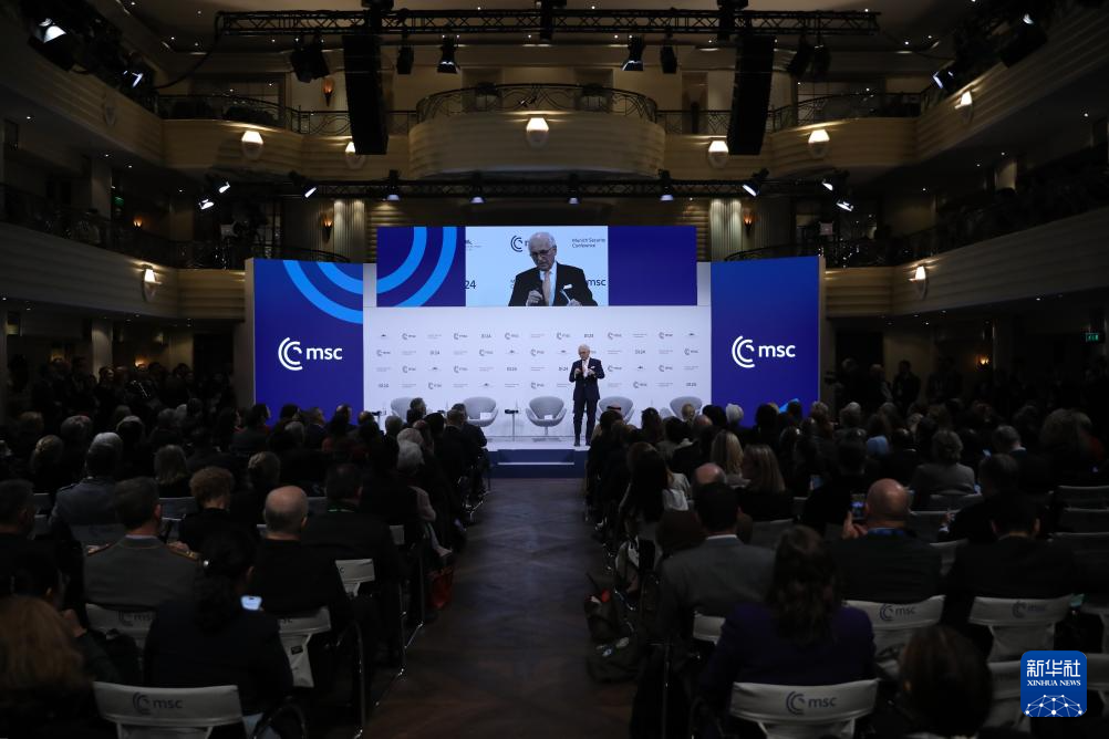 2月15日,在德國慕尼黑,慕安會主席沃爾夫岡·伊申格爾在閉幕式上致辭。新華社記者 杜哲宇 攝