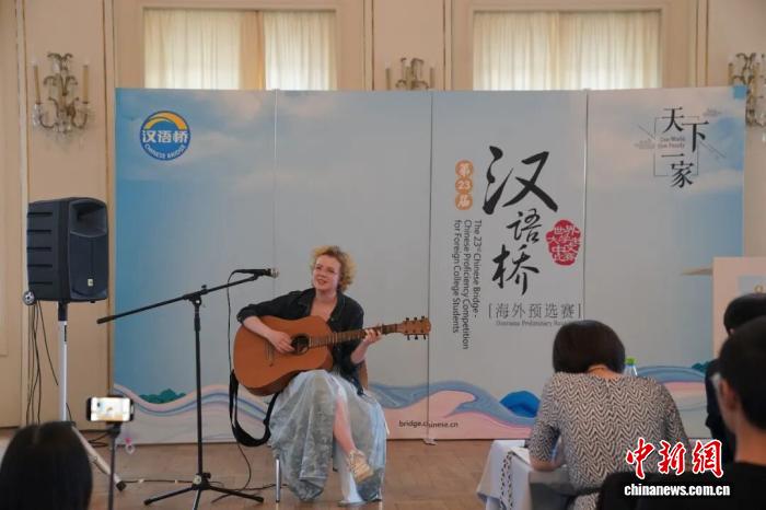 2024年5月25日,第二十三屆“漢語(yǔ)橋”世界大學(xué)生中文比賽德國(guó)區(qū)決賽在萊比錫舉行。圖為特等獎(jiǎng)得主李歡欣(Ann-Christin Otte)在比賽中展示才藝。中新社記者 馬秀秀 攝