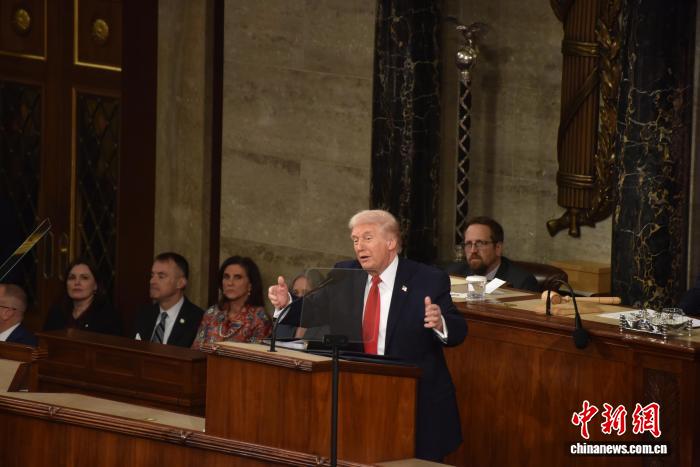 當(dāng)?shù)貢r(shí)間2月24日晚,美國總統(tǒng)特朗普在國會(huì)參眾兩院聯(lián)席會(huì)議上發(fā)表國情咨文講話,聚焦經(jīng)濟(jì)、移民等議題。這是特朗普在本總統(tǒng)任期內(nèi)首次發(fā)表國情咨文。 記者 沙晗汀 攝