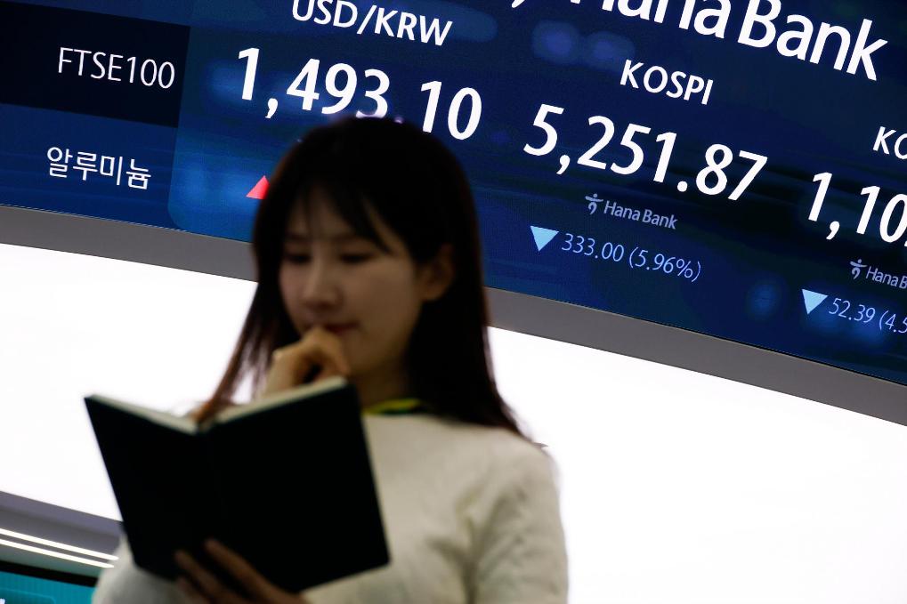 這是3月9日在韓國首爾一家銀行拍攝的股指顯示屏。新華社發(fā)(全休相攝)