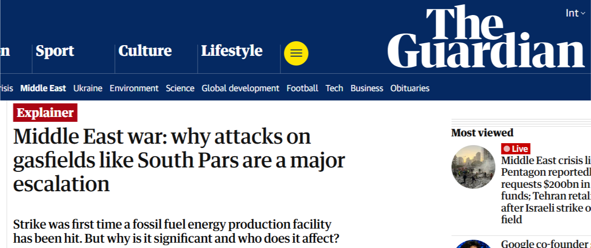 在以色列空軍當(dāng)?shù)貢r間3月18日襲擊了位于伊朗南部布什爾市的伊朗“主要天然氣設(shè)施”后,19日,伊朗方面表示已發(fā)動“真實(shí)承諾-4”行動第63波攻勢,“焚毀”與美國相關(guān)的石油設(shè)施作為報復(fù)。相關(guān)聲明稱,伊朗同美國和以色列的戰(zhàn)爭已進(jìn)入“新階段”。多家外媒指出,這是美以發(fā)動對伊軍事打擊以來,首次襲擊伊朗在海灣的能源生產(chǎn)設(shè)施,標(biāo)志著戰(zhàn)爭的“重大升級”。