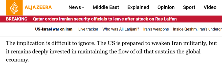 半島電視臺3月18日的報道分析稱,這暗示美國已準(zhǔn)備在軍事上削弱伊朗,但仍高度致力于維持全球石油流動。