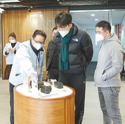 江蘇分社記者王偉?。ㄓ乙唬┖桶坠獾希ㄓ叶┰诮K省無錫市新吳區(qū)索尼數(shù)字產(chǎn)品(無錫)有限公司采訪。祝 林攝