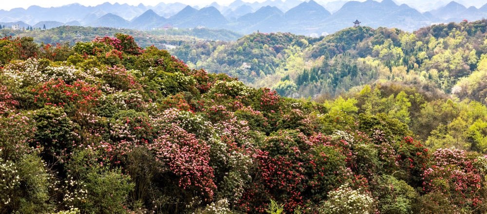 地處貴州畢節(jié)的百里杜鵑風(fēng)景名勝區(qū),每年花開(kāi)時(shí)節(jié)都會(huì)吸引游客前來(lái)觀賞。此處綿延分布了125.8平方公里的原始杜鵑林帶,是國(guó)家5A級(jí)旅游景區(qū)。