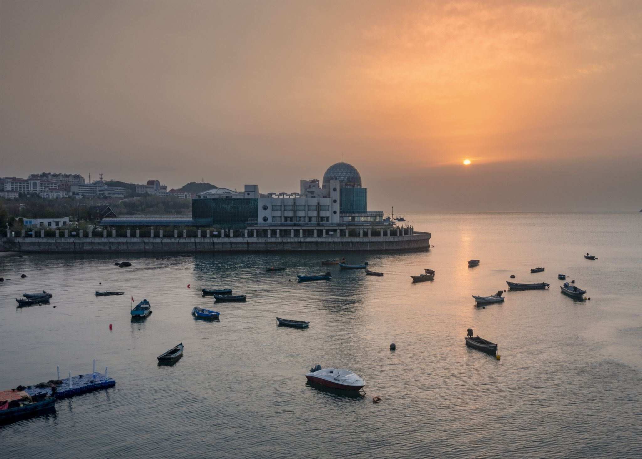 2023年4月29日,山東威海,威海灣在朝陽的映照下栩栩生輝,美景如畫。視覺中國