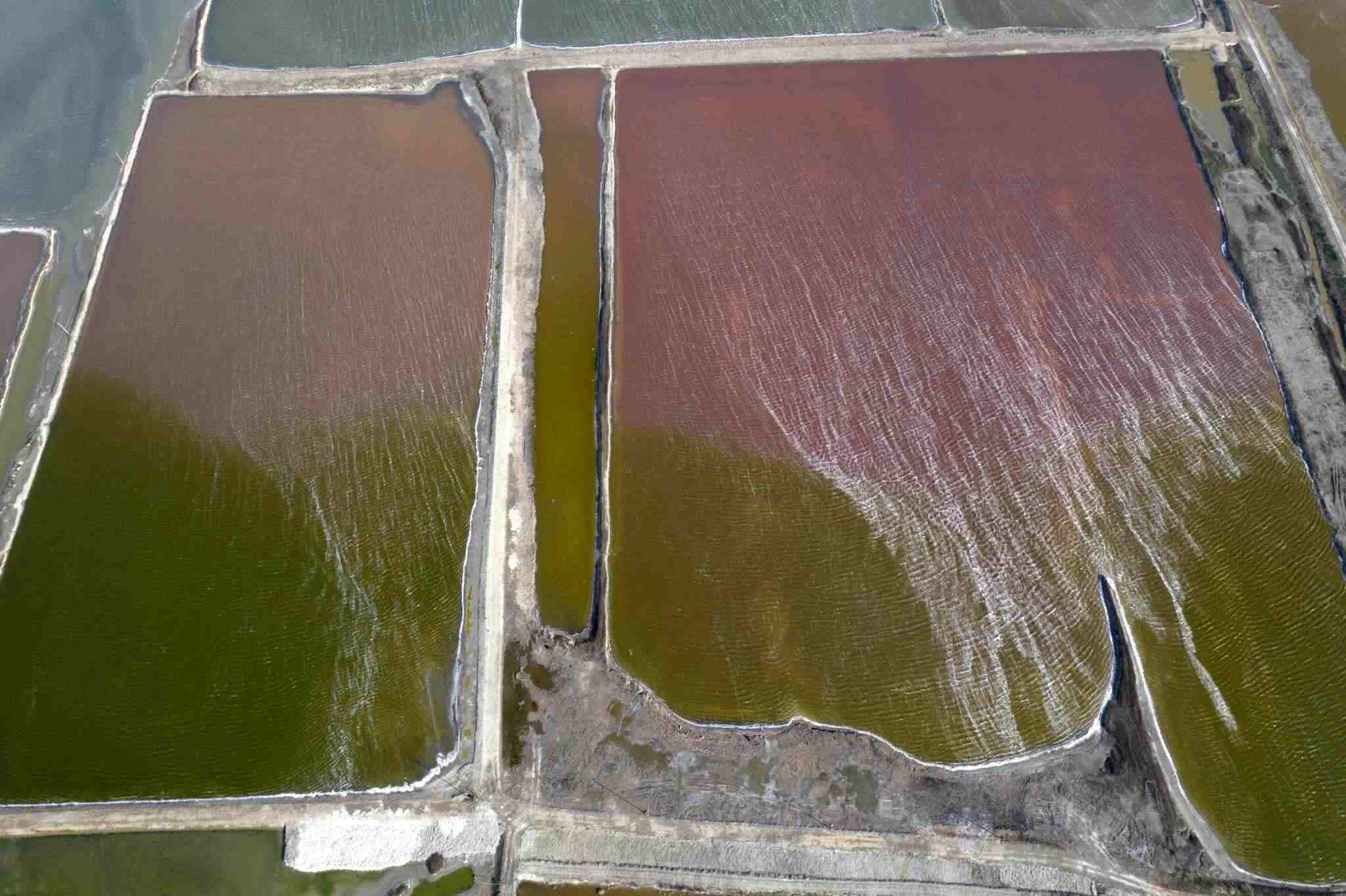 山西運城:七彩鹽湖現(xiàn)風吹波浪景觀