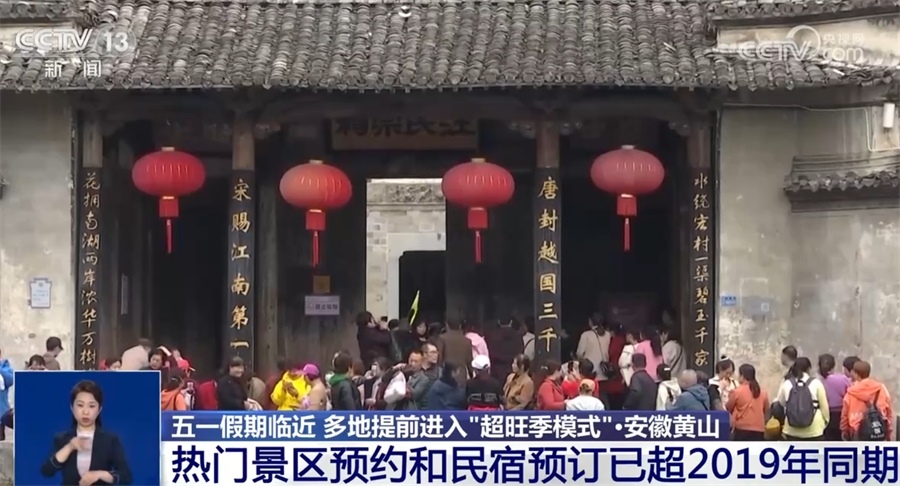目前西遞、宏村等熱門景區(qū)內(nèi)民宿預(yù)訂量已達75%,景區(qū)外民宿預(yù)訂約65%,景區(qū)預(yù)約人數(shù)和民宿預(yù)訂量均已超過2019年同期水平。
