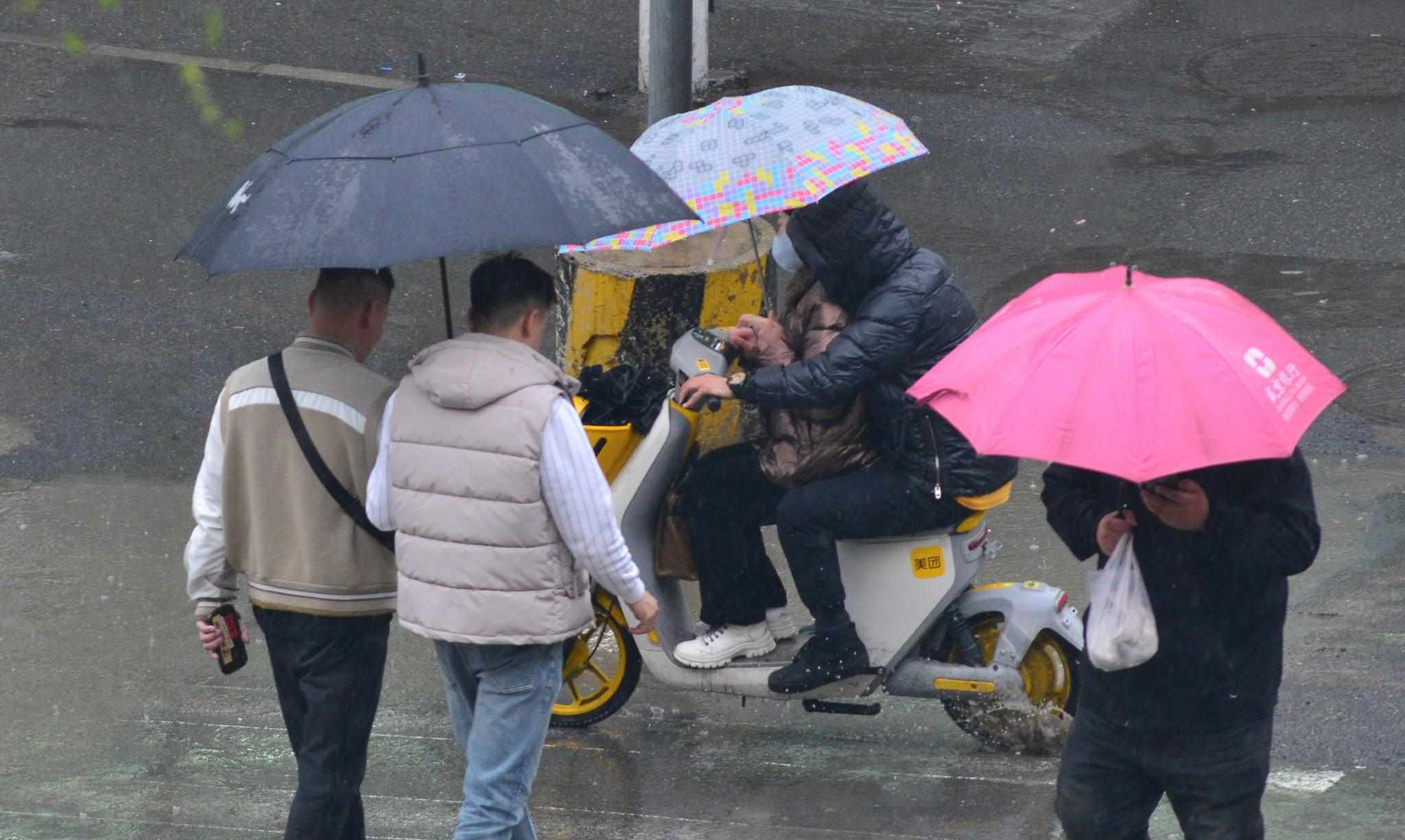 2023年4月28日,沈陽(yáng),降雨降溫持續(xù)多日,市民著厚衣出行。視覺中國(guó)
