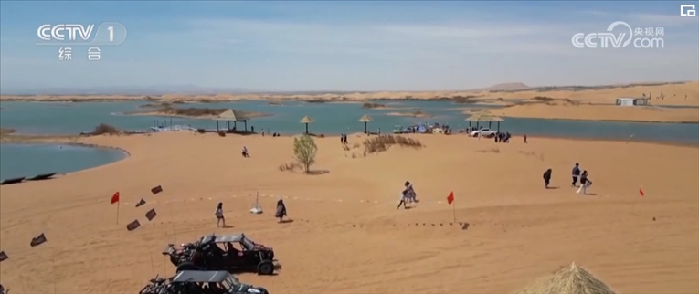 在位于內(nèi)蒙古烏海市的烏蘭布和沙漠營地,游客們乘坐沙漠越野車,在浩瀚無垠的沙漠中穿行,騎駱駝品味大漠風(fēng)光,還可以騎水上自行車暢游湖面感受碧波蕩漾。20余種娛樂項目讓游客們玩得不亦樂乎,流連忘返。
