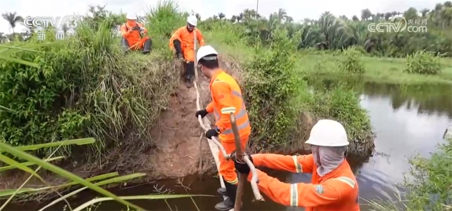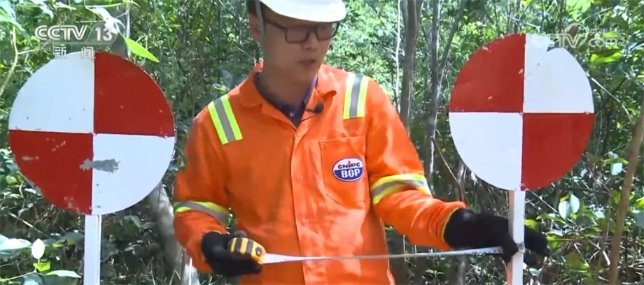 在勘探過程中,工作人員會(huì)用不同顏色的飄帶進(jìn)行標(biāo)記,這種紅色的飄帶是代表保護(hù)樹種,禁止砍伐,藍(lán)色飄帶則指示著項(xiàng)目的路線。這些飄帶全都是用可降解材料制成的,在勘探任務(wù)結(jié)束后,還會(huì)有專門的小組對(duì)工區(qū)進(jìn)行垃圾回收和雨林恢復(fù)工作。目前,項(xiàng)目已經(jīng)完成了70%的工作量,預(yù)計(jì)7月中旬可以順利竣工。一年多來,項(xiàng)目多次接受當(dāng)?shù)丨h(huán)保等部門的各項(xiàng)檢查,每一次審計(jì)和檢測(cè)都收到了相關(guān)方非常高的評(píng)價(jià)。
