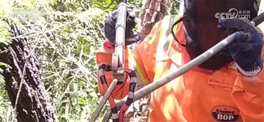 如果在勘探中碰到社區(qū),團(tuán)隊(duì)也會(huì)采取“技術(shù)性偏點(diǎn)”繞過這些區(qū)域,盡管增加了成本,卻將對(duì)環(huán)境的影響降到最低。項(xiàng)目環(huán)保團(tuán)隊(duì)還配備了6名動(dòng)植物學(xué)家負(fù)責(zé)施工區(qū)域中的動(dòng)植物保護(hù)。今年3月,團(tuán)隊(duì)在勘探中發(fā)現(xiàn)了一條毒性很強(qiáng)的珊瑚蛇,為了保護(hù)作業(yè)人員的安全,他們決定將它轉(zhuǎn)移到項(xiàng)目施工區(qū)以外的地方。