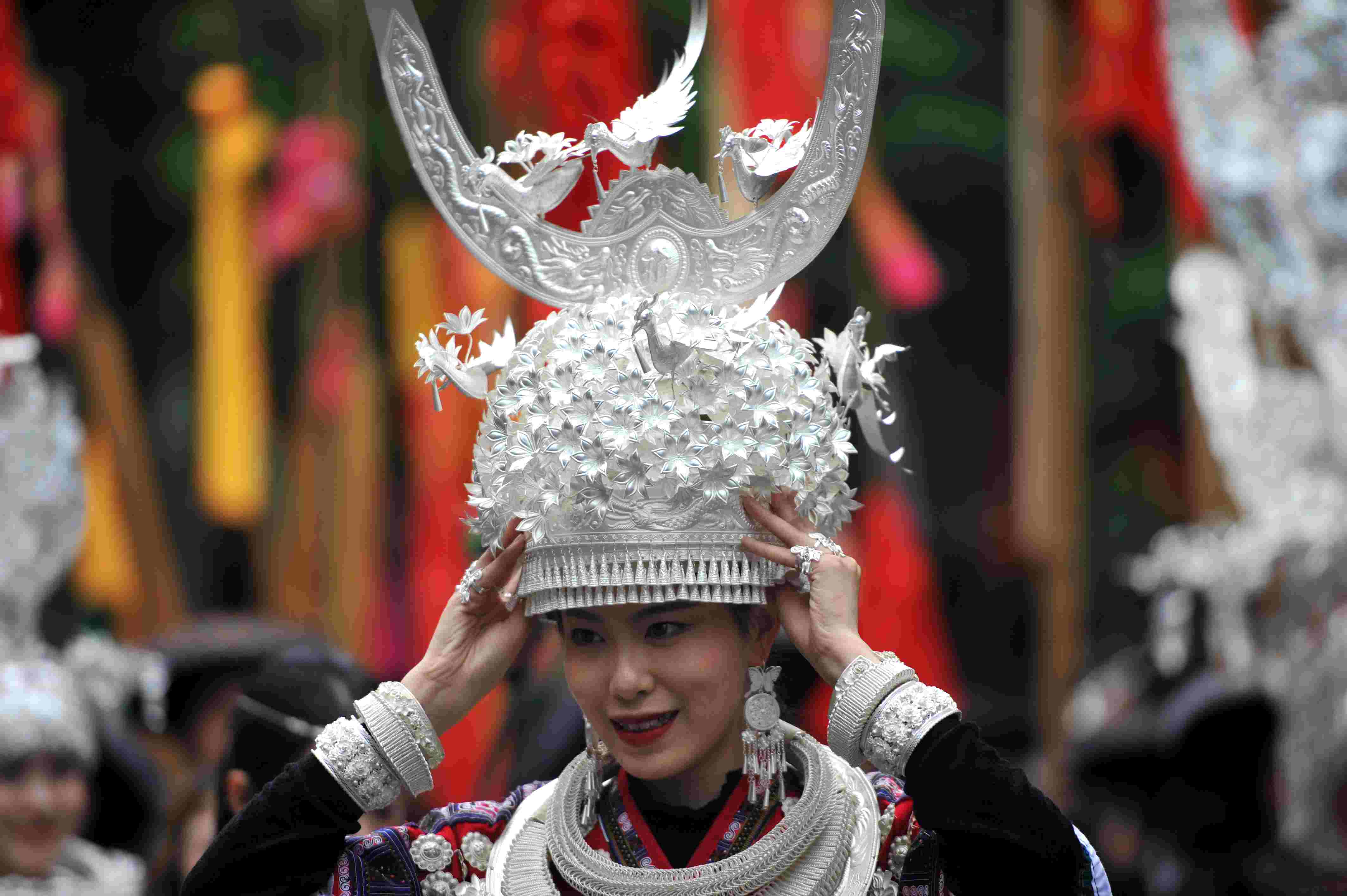 貴州省臺(tái)江縣苗族文化豐富多彩厚重,其服飾是苗族文化的重要載體,苗族女子服飾以靚麗的銀飾、精美的刺繡和獨(dú)特的審美文化內(nèi)涵而被稱為“穿在身上的史書(shū)”,成為識(shí)別苗族9大支系的重要標(biāo)識(shí),具有極高的藝術(shù)、觀賞和收藏價(jià)值。 (寧堅(jiān))