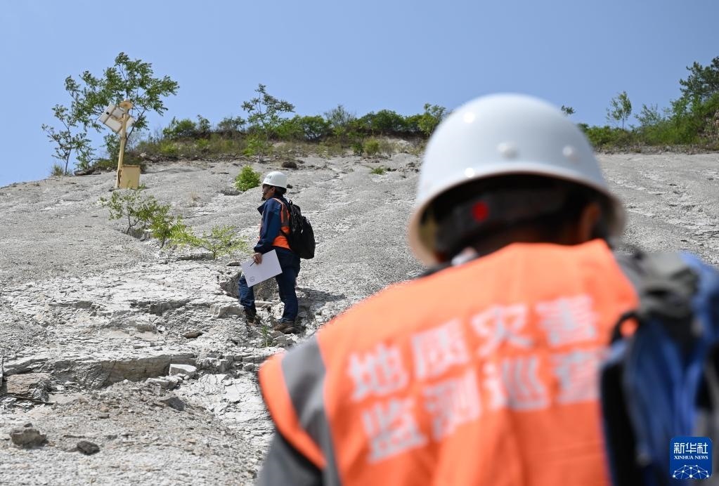 5月9日,在偏橋子滑坡地質(zhì)災(zāi)害隱患點(diǎn),參賽選手觀察滑坡體。   新華社記者 趙子碩 攝