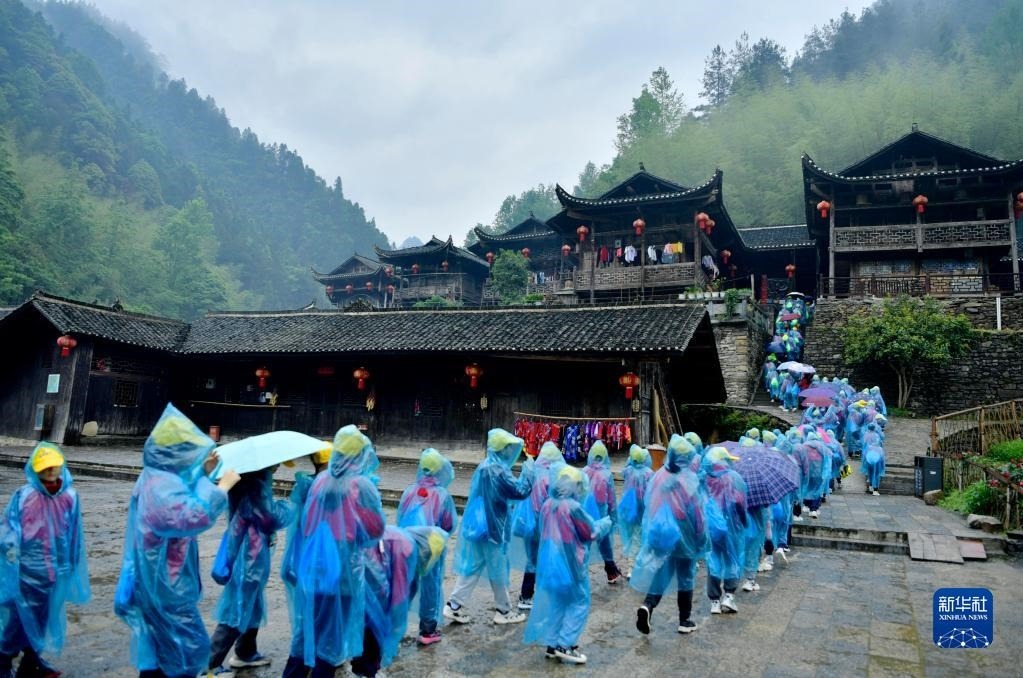 湖北省宣恩縣彭家寨風(fēng)景區(qū)依托保存完好的土家古吊腳樓群落,通過(guò)完善研學(xué)基礎(chǔ)設(shè)施,吸引各地學(xué)校組織學(xué)生來(lái)此開展土家民俗文化、土家建筑等研學(xué)活動(dòng)。古寨研學(xué)不僅讓學(xué)子們收獲成長(zhǎng),同時(shí)也豐富了山區(qū)旅游的內(nèi)涵,為帶動(dòng)鄉(xiāng)村振興注入了新動(dòng)能。新華社發(fā)(宋文攝)